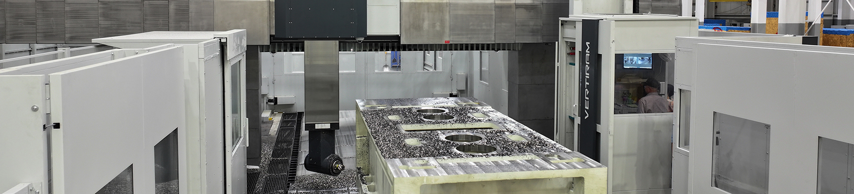 Capable of high accuracy, five-sided machining of heavy components, the Pama Vertiram has been highly customized to include two 4000mm x 7000mm tables with 10 spindle units including vertical, right angle, and universal configurations. The table weight capacity will hold up to 100 tons.